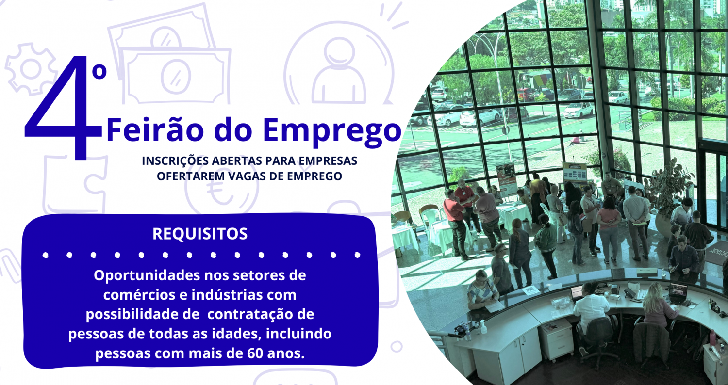 A Prefeitura de Indaiatuba, por meio da Secretaria de Tecnologia, Inovação e Desenvolvimento Econômico e do Posto de Atendimento ao Trabalhador (PAT), abre inscrições para empresas interessadas em participar do 4º Feirão do Emprego, que nesta edição terá foco nos setores de comércio e indústria, com ênfase na contratação de profissionais de todas as idades, incluindo pessoas com mais de 60 anos.