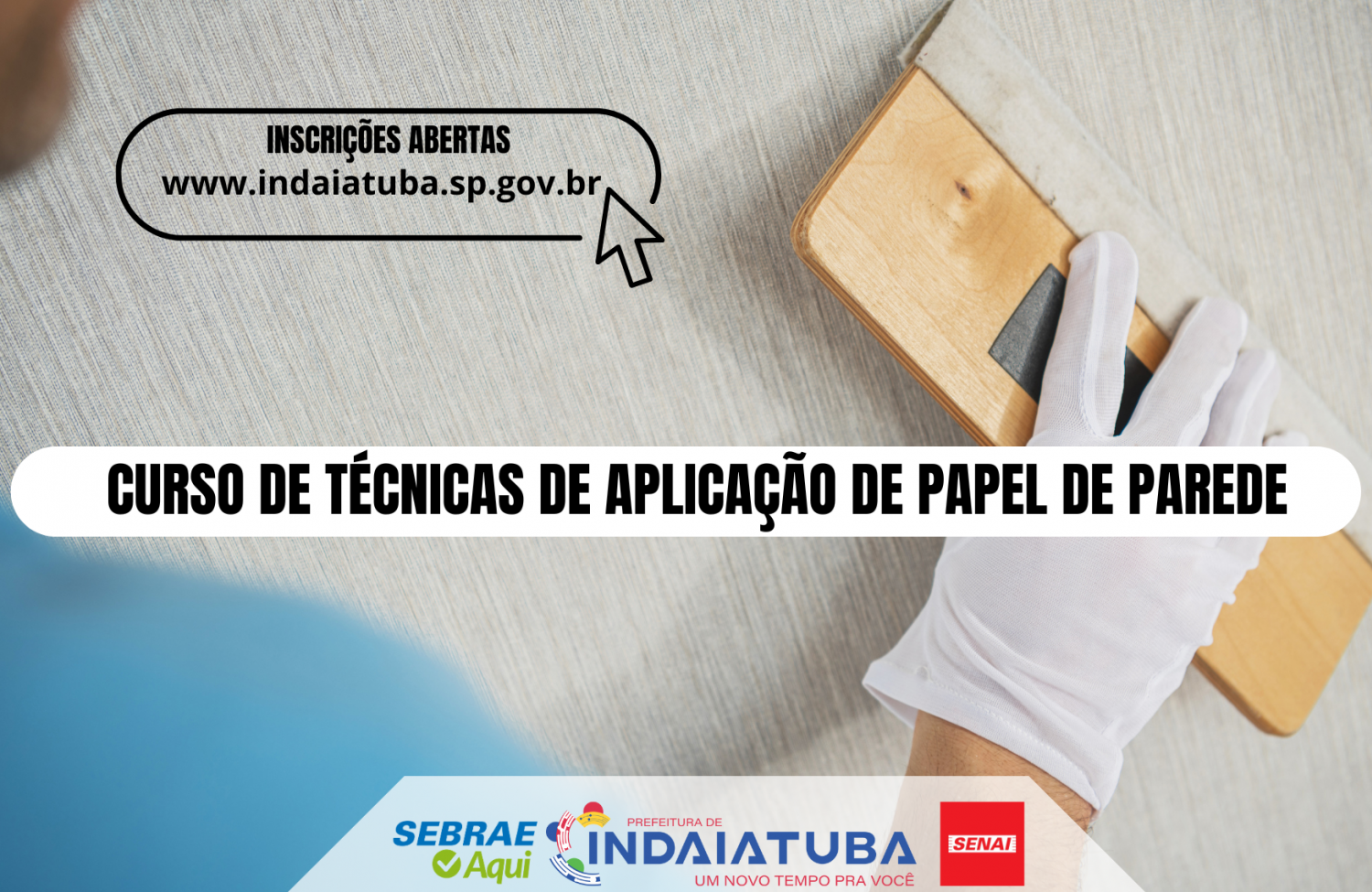 A Prefeitura de Indaiatuba, por meio da Secretaria de Tecnologia, Inovação e Desenvolvimento, em parceria com o Posto Sebrae Aqui Indaiatuba e o Senai, realiza o curso “Aprenda Técnicas de Aplicação de Papel de Parede”. As aulas acontecem de 1º a 9 de dezembro, no período noturno, das 18h às 22h, de forma presencial, no Senai Indaiatuba. Os interessados podem se inscrever pelo link: https://www.sympla.com.br/evento/aprenda-tEcnicas-de-aplicaCAo-de-papel-de-parede—sebrae-aqui-indaiatuba-e-senai/3183171.