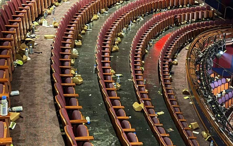 O jornalista americano Matt Neglia, do portal Next Best Picture, divulgou uma imagem do Dolby Theater, em Los Angeles, local onde ocorreu o Oscar 2026, totalmente sujo após o final da cerimônia.